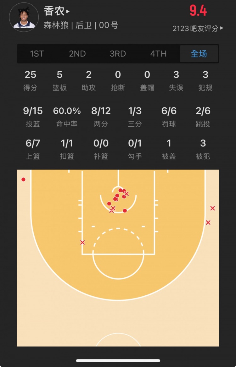森林狼27號(hào)秀 小特倫斯-香農(nóng) 登場(chǎng)29.0分鐘