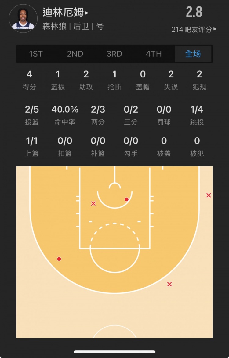 森林狼8號(hào)秀 羅布-迪林厄姆 登場(chǎng)11.6分鐘