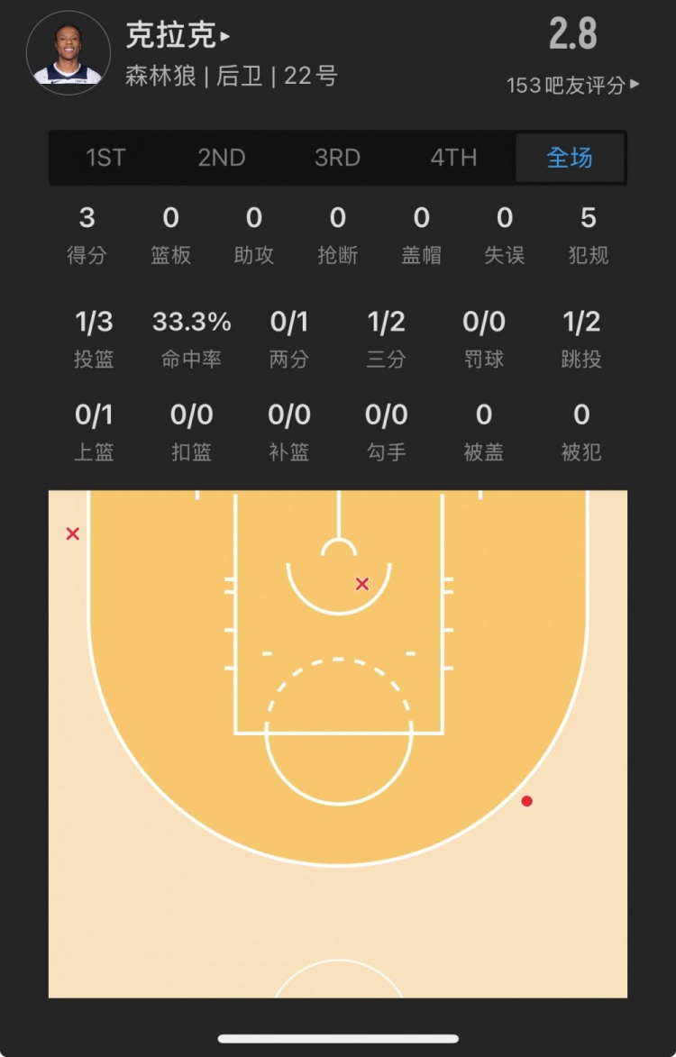 森林狼23年53號(hào)秀 杰倫-克拉克 登場(chǎng)17.0分鐘