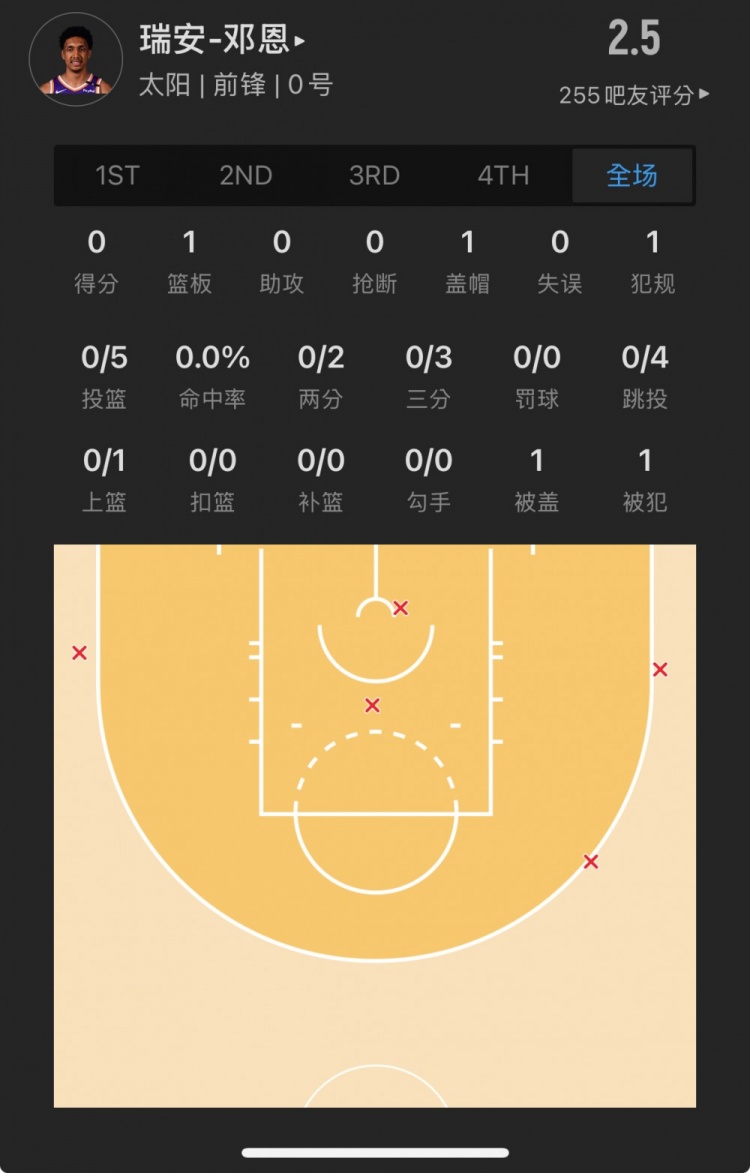 太陽(yáng)28號(hào)秀 瑞安-鄧恩 登場(chǎng)13.6分鐘