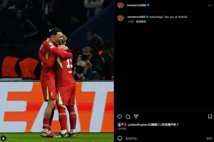 3月7日訊 歐冠1/8決賽首回合中,利物浦1-0絕殺巴黎。賽后,阿諾德更新社媒,慶祝球隊(duì)取得這場來之不易的勝利。