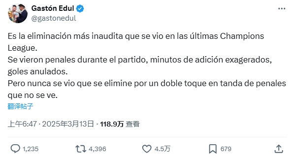 阿根廷國家隊(duì)跟隊(duì)記者埃杜(Gastón Edul)在社媒就此表達(dá)了自己的看法: