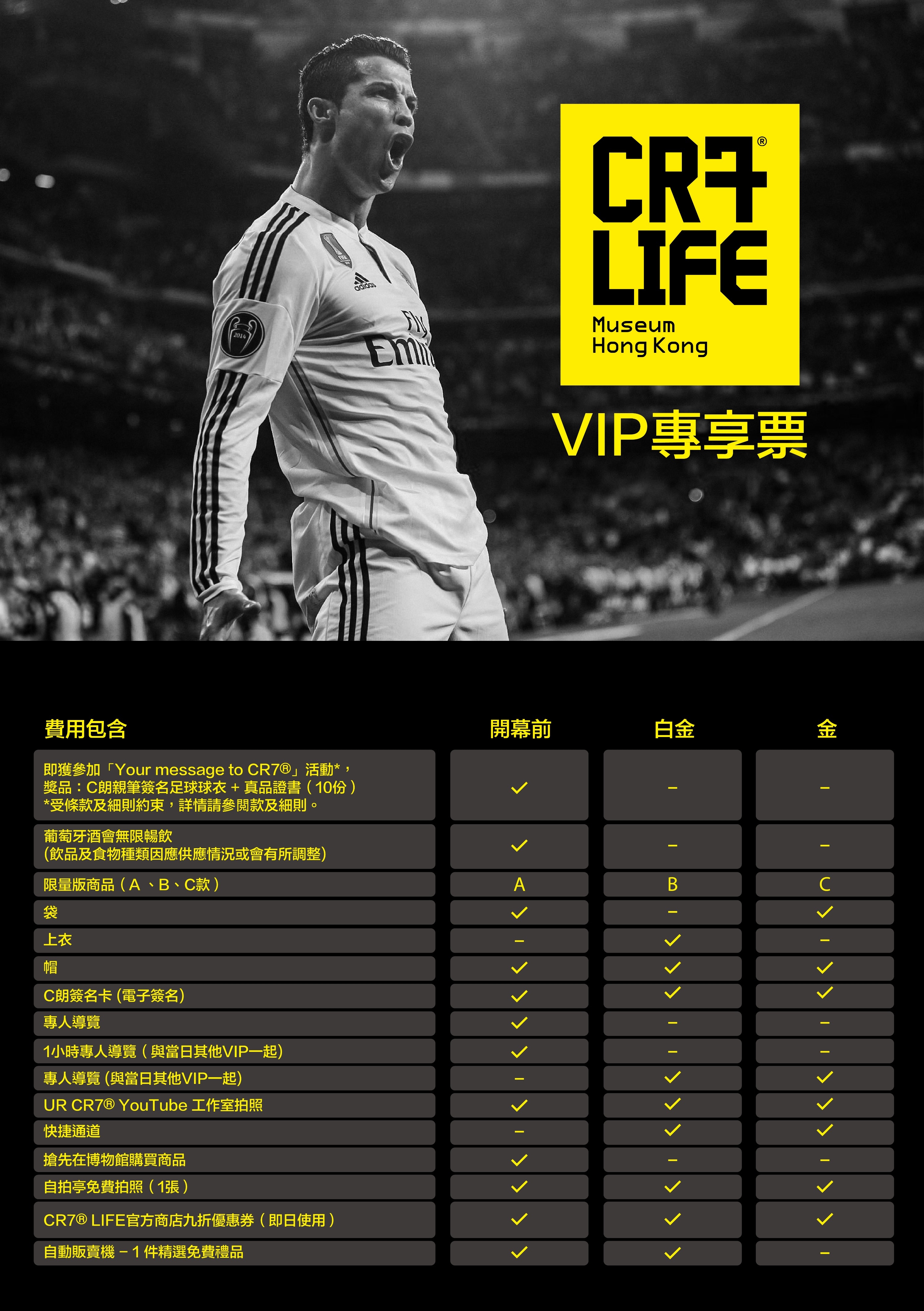 “CR7?生活博物館”門(mén)票今日(5日)正式開(kāi)售,最貴的VIP門(mén)票售價(jià)4000港幣(折合人民幣3687.88元),可在博物館開(kāi)幕前一至兩日進(jìn)場(chǎng)參觀,及參加抽獎(jiǎng),贏取C羅簽名T恤;成人票價(jià)180港幣,老人及兒童150港幣。