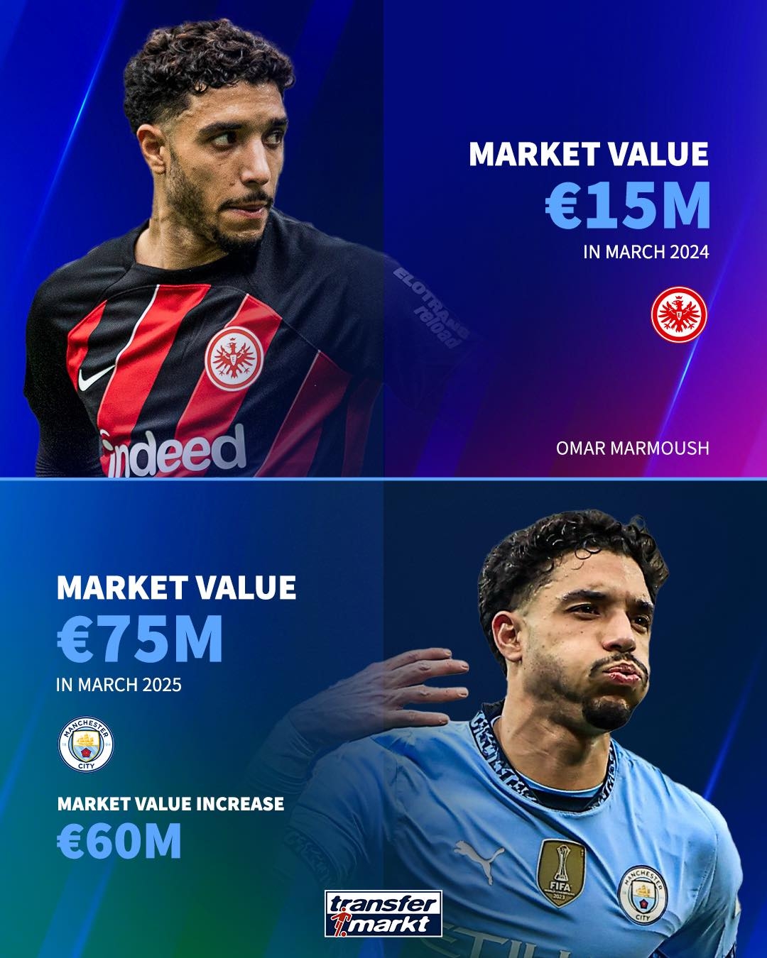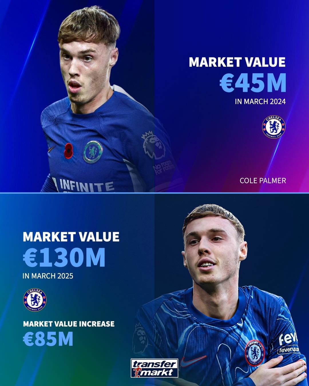 英超球員過去1年身價漲幅:帕爾默暴漲8500萬歐 馬爾穆什漲6000萬