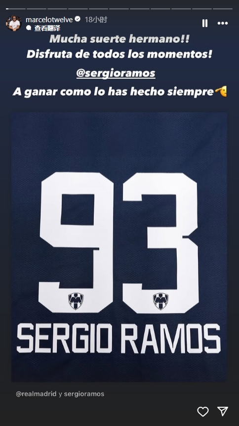 2月11日訊 38歲西班牙中衛(wèi)拉莫斯自由身加盟蒙特雷,身披93號球衣,前皇馬隊友馬塞洛社媒為他送上祝福。馬塞洛在社交媒體上寫道:“祝你好運,兄弟!享受每一刻!一如既往地去贏下比賽吧!” 標簽: 足球 西甲 皇家馬德里
